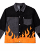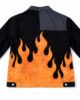 Demarcating black heavy denim serves as the base material while the jacket features minimal front artwork as a subtle “HEART HEIST” embroidered chest design which appears as hidden flames until you reveal your front. The flame effect painted on this jacket dominates no matter what you choose to light with it. The power to ignite comes from your side because this fuel source simply provides energy to burn.